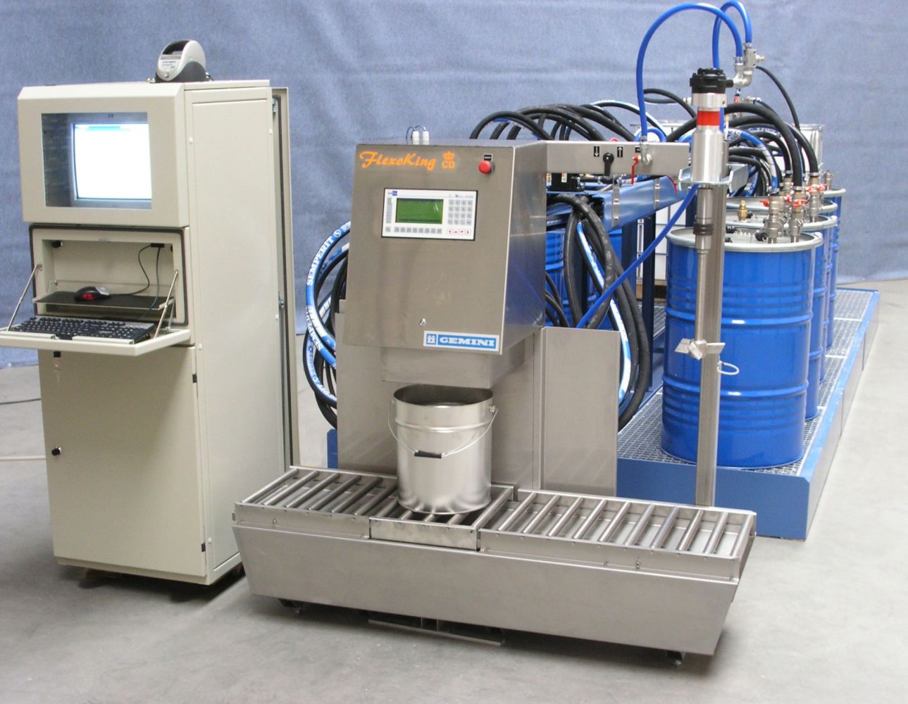 FlexoKing is a Gemini dispensing system that is offered in both FT and CD versions, each with the ability to use multiple types of tanks for dispensing your materials, with varying sizes and options.